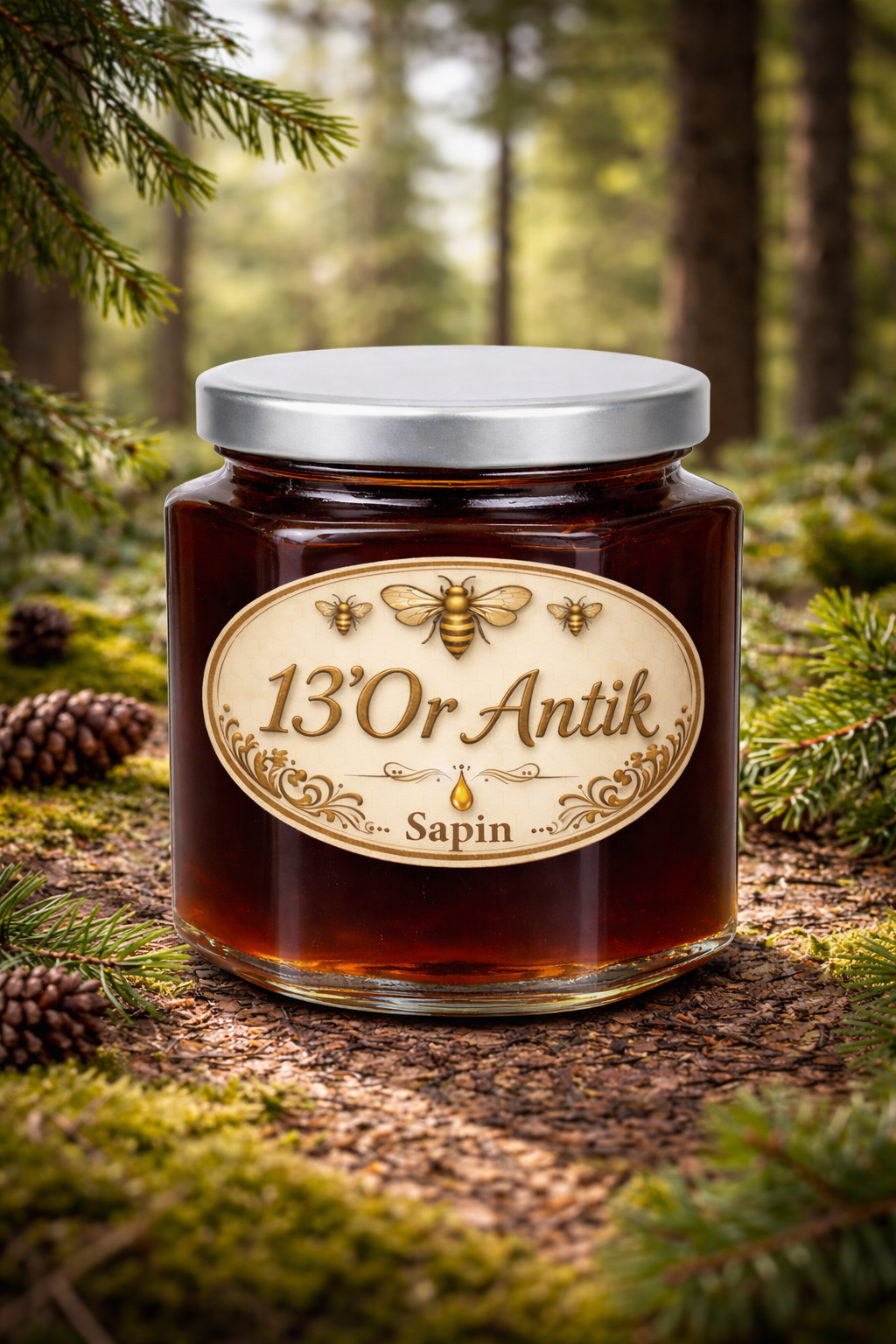 Récolté dans les forêts françaises, ce miel de miellat provient des exsudats de sapin récoltés par les abeilles. Il est sombre, dense et très riche en minéraux.